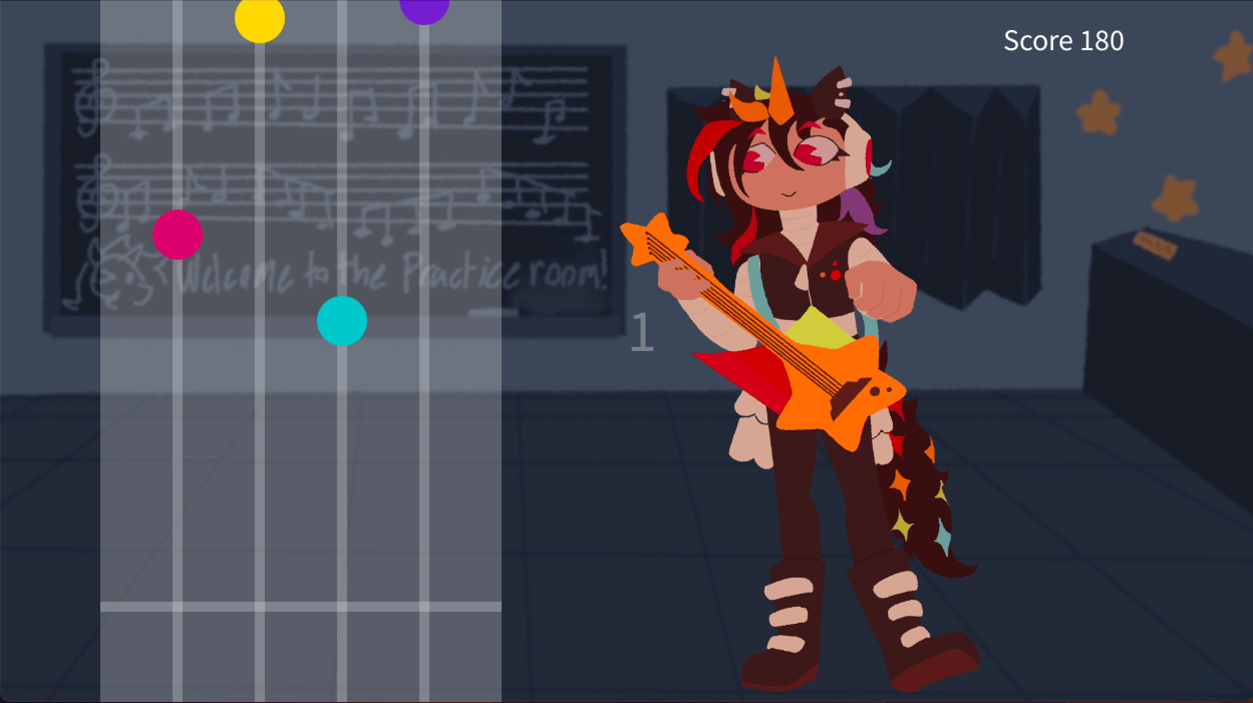Monotony is an eye tracking psychological horror game produced for the National High School Game Academy over the course of four weeks. It centers around an overtired college student who is being plagued by eldritch horrors haunting their vision. The player is tasked with completing boring everyday objectives while not looking at the colorful monsters invading their screen. I worked as one of two artists on the project. I created the sprites, animation, a font, and logos, as well as collaborated with my co-artist on the concept art. Won Best Visual Gameplay at NHSGA.